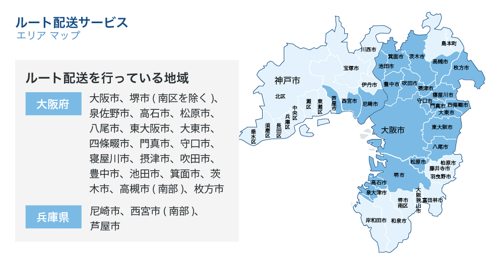 ルート配送の対応エリアを一目で分かるようにマップを作成